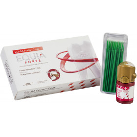Emballage: EQUIA Forte Coat og 25 engangsapplikatorer. Flaske 4 ml.
